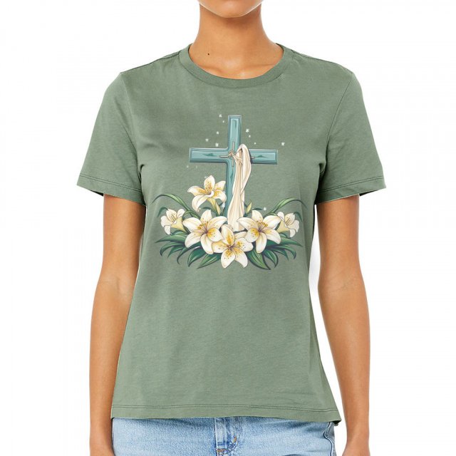 Easter Lily Flowers With Cross Racerback Cropped Tank – Religious Gift Idea – Easter Design Apparel